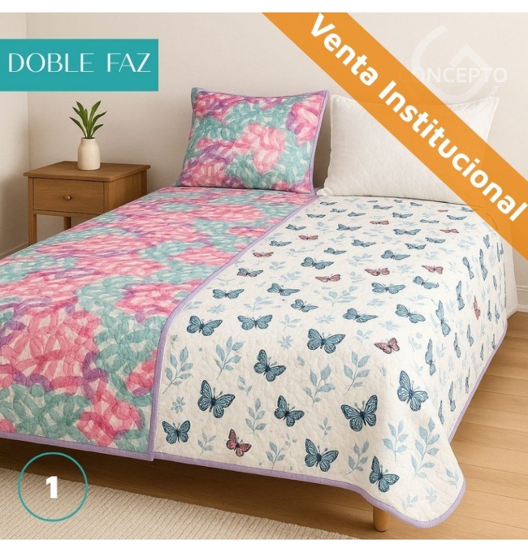 INCLUYE: Un (1) Edredón Doble Faz + Dos (2) Fundas Decorativas.